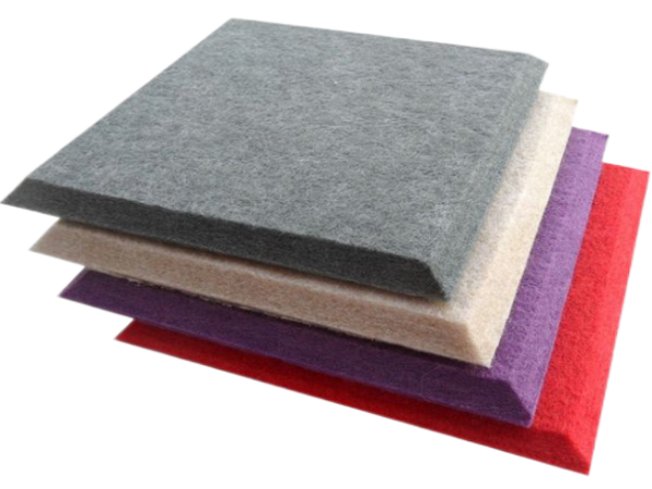 聚酯纖維吸音板:聚酯纖維經高技術熱壓并以繭棉形狀制成,實現密度多樣性確保通風,成為吸音及隔熱材料中的優秀產品,在125~4000HZ噪聲范圍內最高吸音系數達到0.9以上,根據不同需要縮短調節混響時間,清除聲音雜質,提高音響效果,改善語言的清晰度。產品具有保溫、阻燃、輕體、易加工、穩定、抗沖擊、維護簡便等特點。
