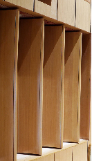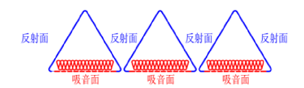 采用三面翻版結構,截面一般邊長為350mm的等邊三角形,,其中兩面為反射面,一面為吸音面;三角形柱體沿中心軸線轉動,使墻面的吸音面積變化,以此達到控制空間內的混響時間。